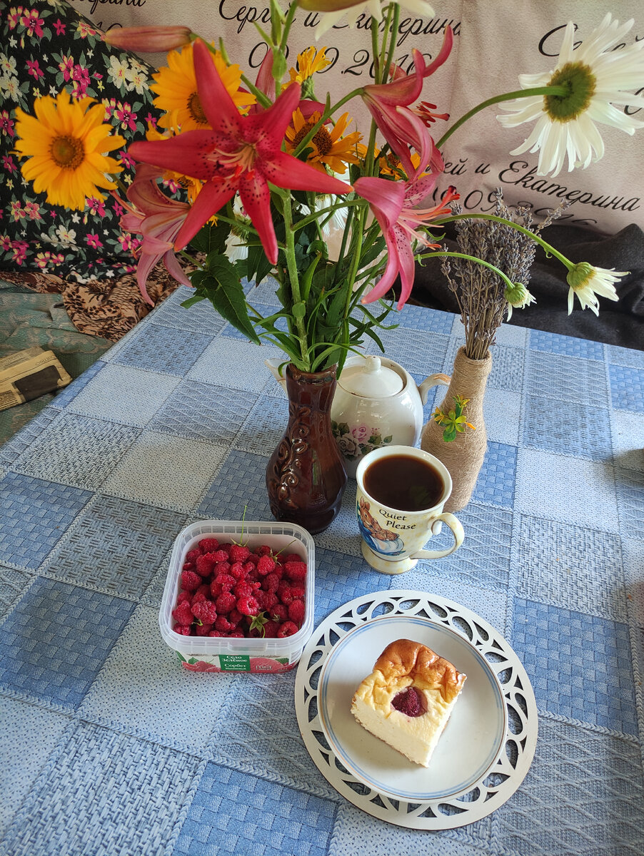 Перекусила домашней запеканкой. И посмотрите, как красиво сервирован стол!😍 А с цветочками — просто волшебно.