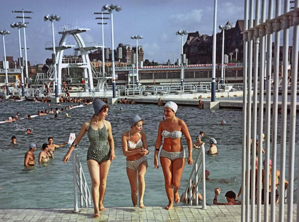 Это место было невероятно популярным. Сюда приходили после работы, чтобы снять напряжение, здесь тренировались юные пловцы, а гости столицы, включая известных иностранных деятелей, считали посещение бассейна обязательным пунктом программы. Мне самому довелось поплавать здесь в 1977 году, и ощущение от купания в огромной чаше под открытым небом в центре мегаполиса осталось в памяти навсегда — это было что-то неописуемое.