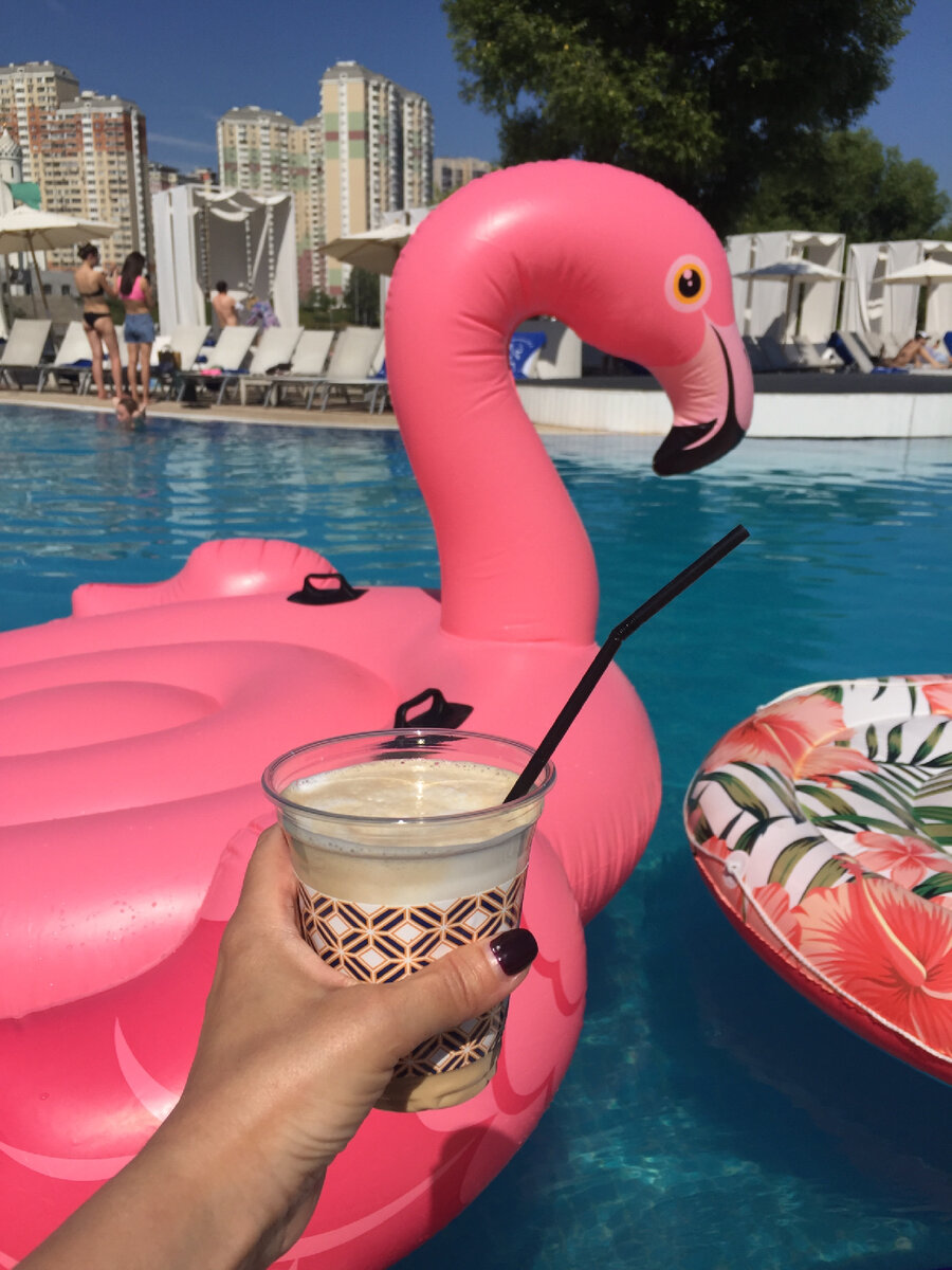 Детям особенно полюбился розовый фламинго-надувушка в бассейне — настоящий хит, вокруг которого собирается веселая детвора.