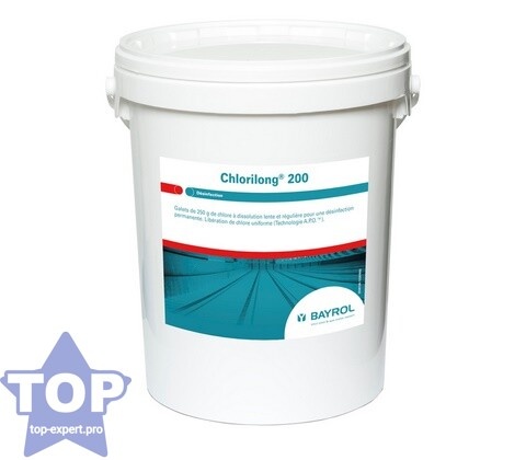 Немецкое качество представлено таблетками «Chlorilong-250». Это крупные, медленнорастворимые таблетки на основе трихлоризоциануровой кислоты. Ключевая особенность — отсутствие извести в составе, что делает средство pH-нейтральным и подходящим для воды любой жёсткости. Таблетки растворяются полностью, не образуя осадка и не засоряя фильтрующую систему. В моём опыте это один из самых предсказуемых и стабильных продуктов для постоянного хлорирования, обеспечивающий ровный и длительный эффект без резких колебаний уровня дезинфектанта.