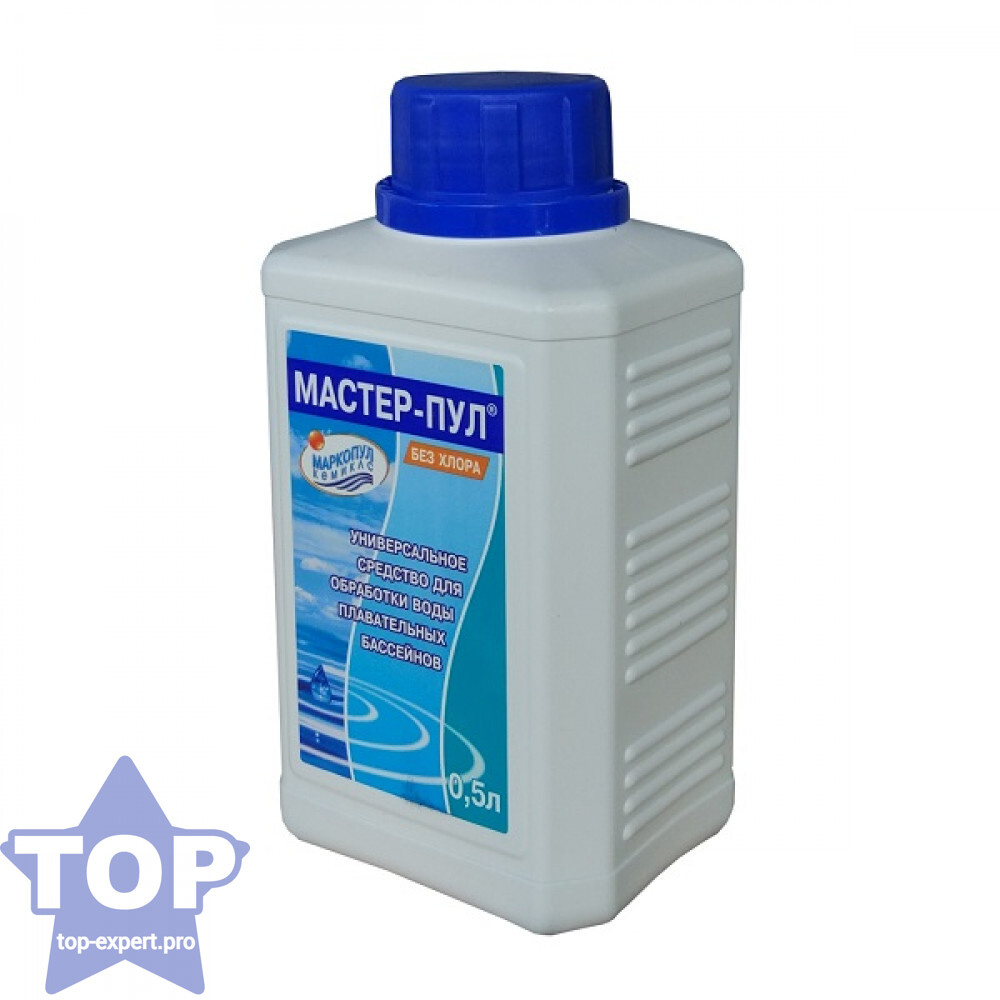 Для тех, кто предпочитает бесхлорные методы очистки, отлично подходит «Мастер Пул». Его формула на основе полимерных катионных ПАВ и поликарбоновых кислот обеспечивает дезинфекцию, подавление роста микрофлоры, осветление и стабилизацию жёсткости воды. Отсутствие хлора делает средство более мягким, что критически важно, если в бассейне часто купаются дети или люди с чувствительной кожей. В моей практике оно показало себя как эффективное решение для профилактики помутнения и образования известкового налёта, особенно в условиях жёсткой водопроводной воды.